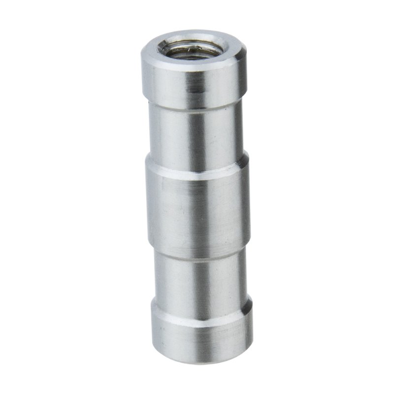 Stainless steel 5/8” (16mm) round adapter comes with 3/8”-16 female threaded in each end.