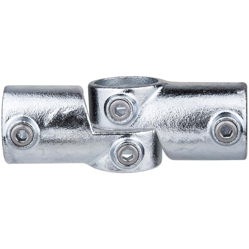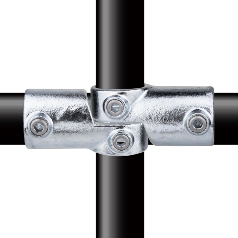 KUPO Double Swivel Zinc-Plated Pipe Coupler (KPC-148) is used in conjunction with vertical column pipes and allows for horizontal rotation on both ends to form a structure with an angle between 85° and 235°. It is made of ASTM A197 cast iron in compliance with international standards and is surface-treated with hot-dip galvanization to effectively prevent rust and wear. The inner hexagonal screws can be used to quickly and tightly connect with the 48.3mm diameter pipe, which can be horizontally rotated on both ends. This is the best choice for indoor or outdoor construction as it does not require additional welding.