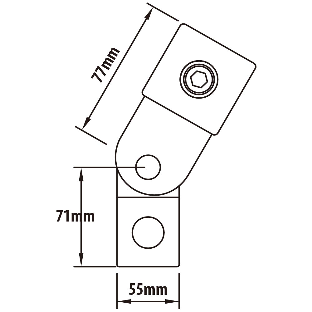 -Single activity joint connector, adjustable up and down by approximately 85° of activity angle