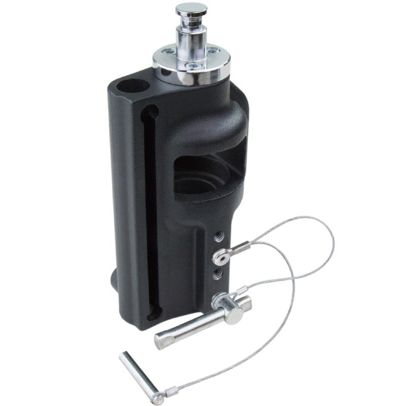 Made of aluminum casting, this spigot adapter features a 5/8”(16mm) baby stud on one side and a 1-1/8“(28mm) junior receiver on the other. Primarily designed for attaching fixtures or accessories that comes with a 1-1/8”(28mm) junior spigot. And safety wire is built with the clamp to ensure this essential safety aid is always on hand.
