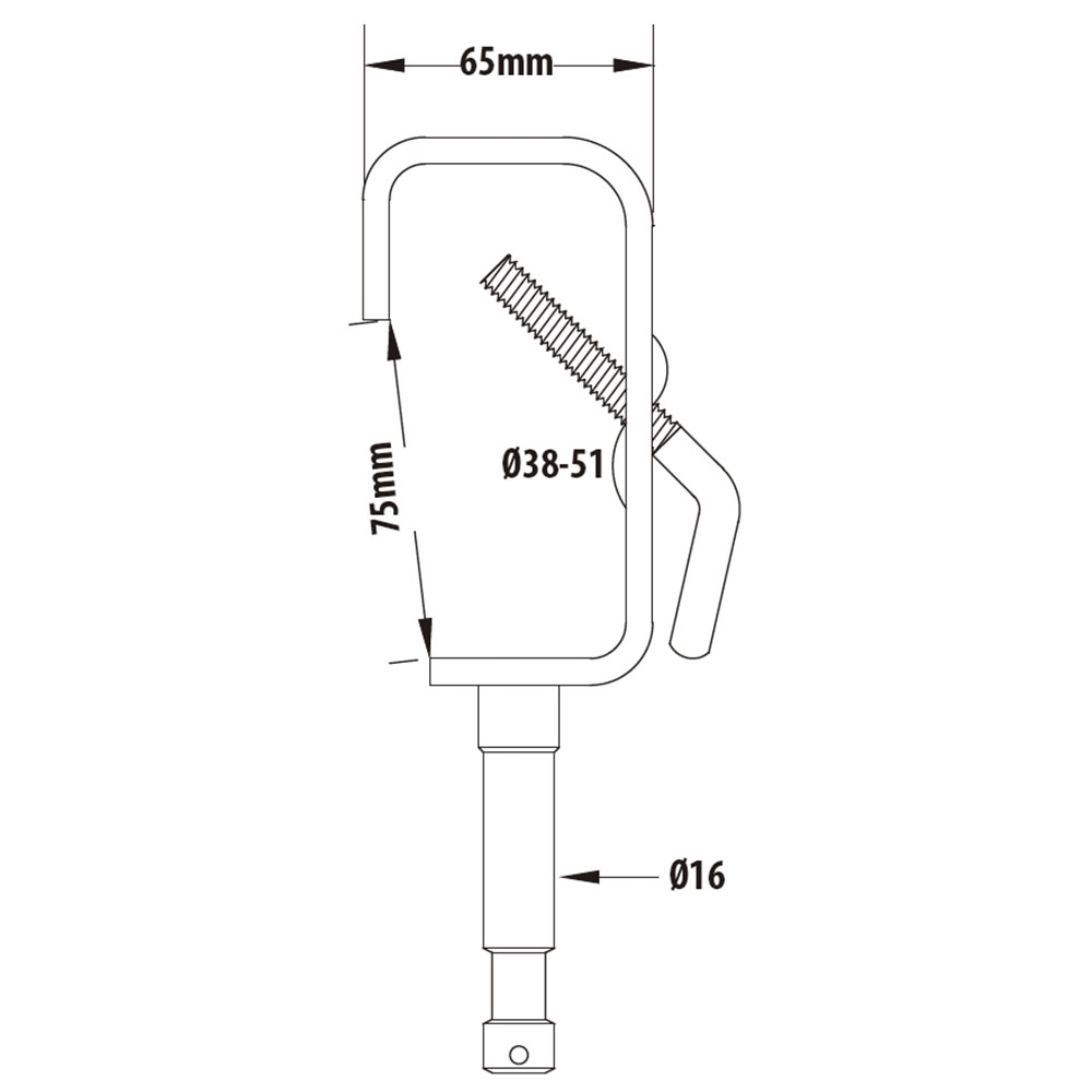 The Kupo stage clamp is a durable and reliable rigging hardware used in the industry. Made from solid steel, it is specifically designed to assist with rigging light luminaries. The clamp is compatible with tube sizes ranging from 38-51mm and can support a payload of up to 50kg (110lbs). The bottom of the hook is equipped with a commonly used 16mm spigot for film and television, which can be used to install small to medium-sized lighting fixtures commonly used in film and television. The single-handle fixing screw can be fixed diagonally or directly onto the pipe, and the design of the handle bending is also easy to apply force during installation. It is suitable for use in studios, theaters, photography studios, and other lighting fixtures.
