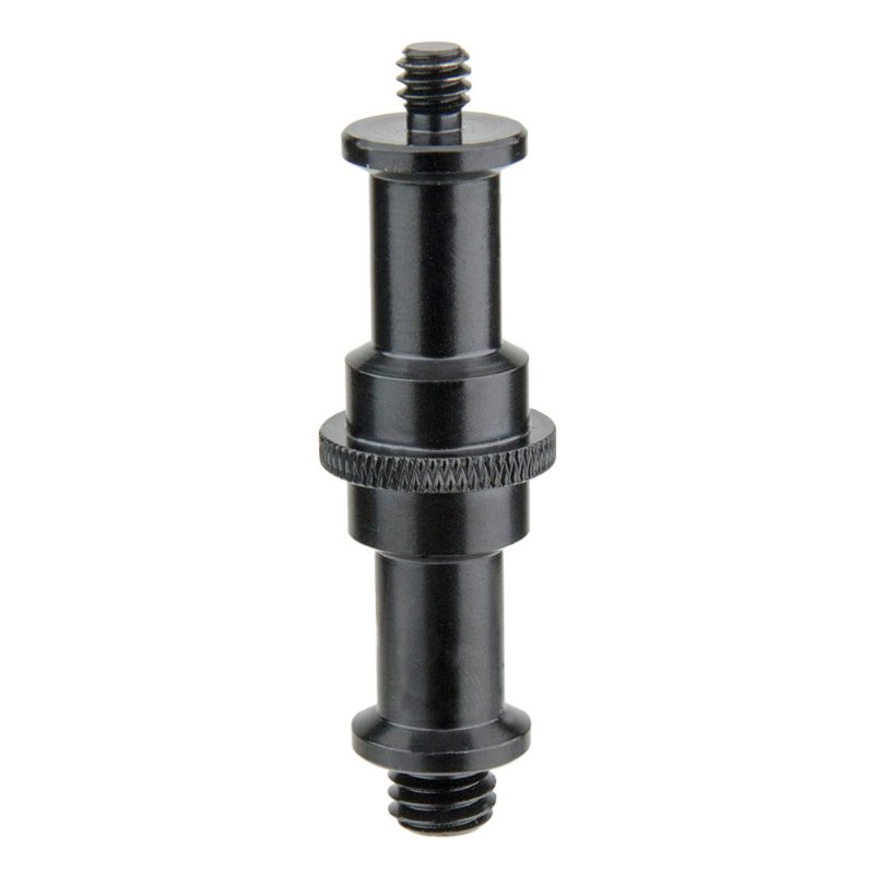 The steel made universal adaptor spigot in black featuring a double-sided baby 5/8" (16mm) stud with 1/4"-20 male thread on one side and a 3/8"-16 male thread on the other. The stud is round and will fit into any equipmeant comes with a 5/8" (16mm) receiver.