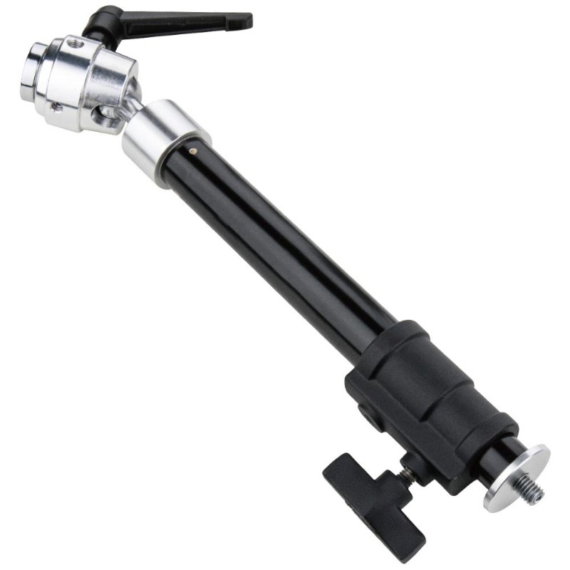 Constructed from black anodized aluminum, the extension riser includes one riser and two sections which comes witha 3/8"-16 threaded male stud in one end and a 3/8"-16 threaded female in the other. The super riser also features a heavy duty metal ball head witha 3/8"-16 threaded male stud and a 3/8"-16 threaded female in the base. The super riser is designed primarily to precisely position the camera in any position withthe height-adjustable column and the ball joint adapter. Ideal for car mount shooting. The height can also be extended from 27cm (10.7") to 43cm (17").