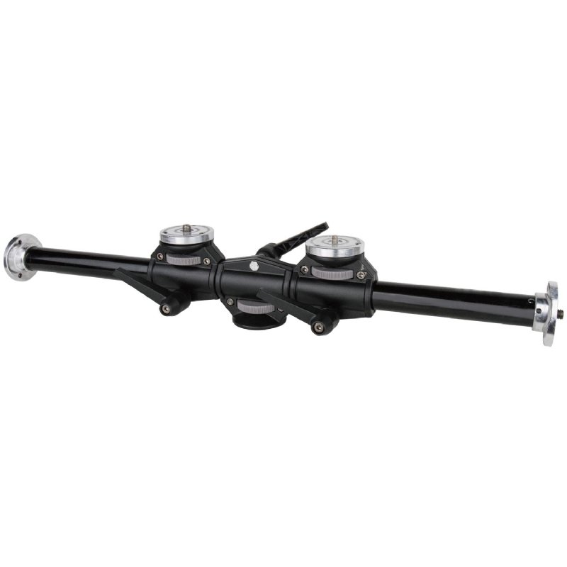 The tether arm is a handy and elegant solution to tethe red shooting. The arm center comes witha 3/8" receiver , offering an easy mount on the tripod head as a crossbar. Two gliding platforms equipped witha 3/8" screw allows double ball-heads to mount for tethe red shooting eithe r withtwo cameras or camera/laptop . A fixed platform witha 3/8" screw at both arm ends allows mounting more than two items.