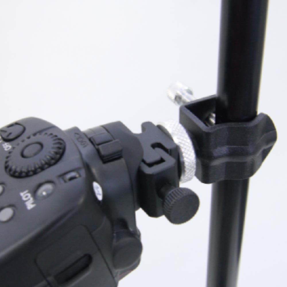 The steel tiny clamp consists of a 1/4"-20 male thread on one side and a small receiver to accept any stud or tubing up to 5/8" (16mm) in diameter. This is the perfect accessory to mount monitors, off camera flashes or lightweight accessories