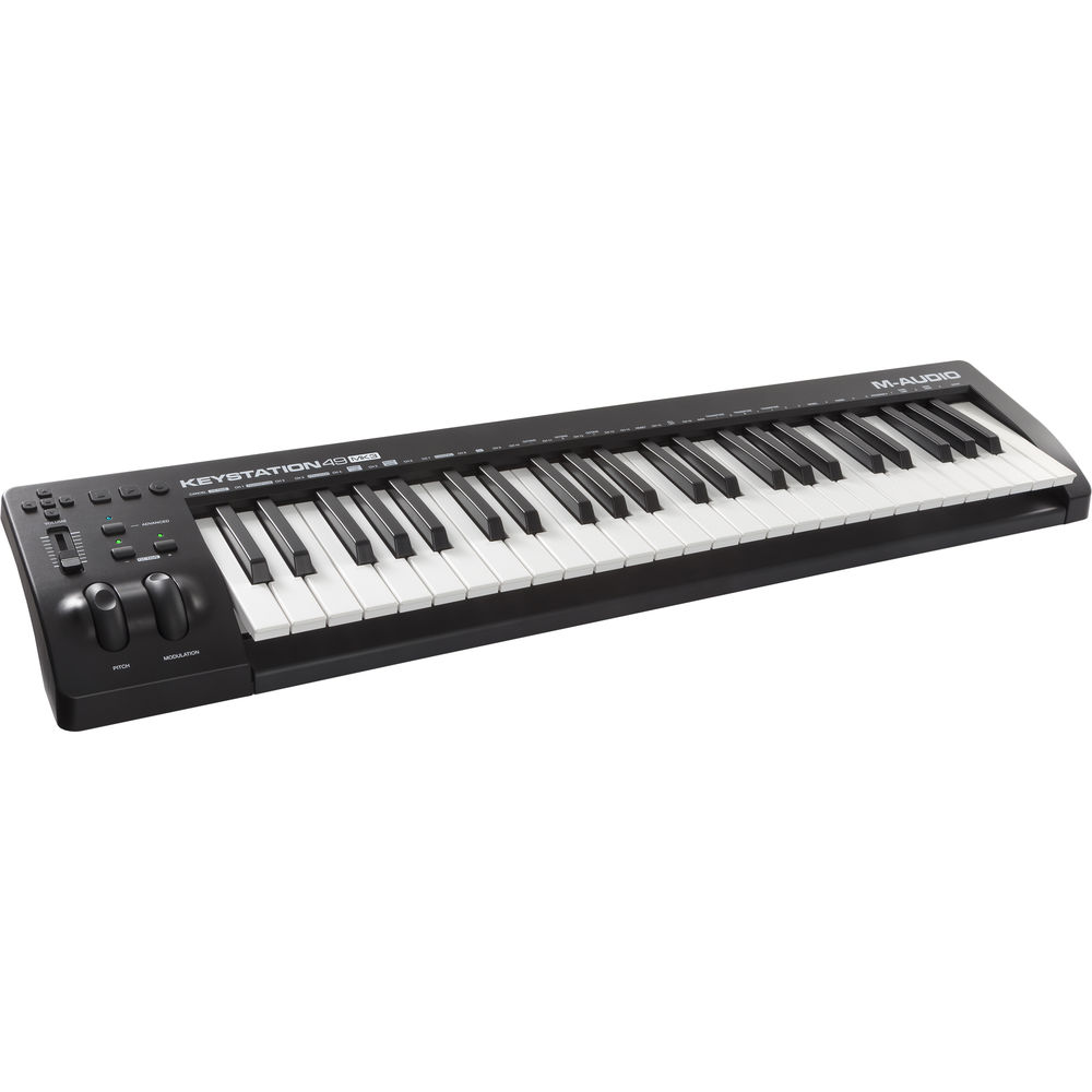 The M-Audio Keystation 49 MK3 is a MIDI keyboard controller designed for sequencing music and playing virtual instruments on a Mac or Windows computer. It is also compatible with iOS devices. The Keystation 49 MK3 features 49 full-size velocity-sensitive keys and a series of controls that expand the range of playable notes, while also providing expressive capabilities.