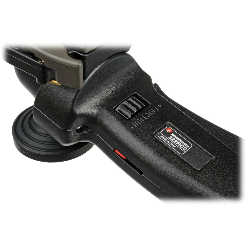 The control handle is initially oriented to provide a horizontal grip for the right hand. However, the included 322RA Quick Release Adapter with 200PL-14 Quick Release Plate are detachable and can be repositioned to enable left-handed use with a horizontal grip. Alternatively, the 322RC2 can be transformed into a joystick-grip ball head suitable for right or left-handed use with the control handle oriented vertically and the quick release adapter attached to the top of the configuration.