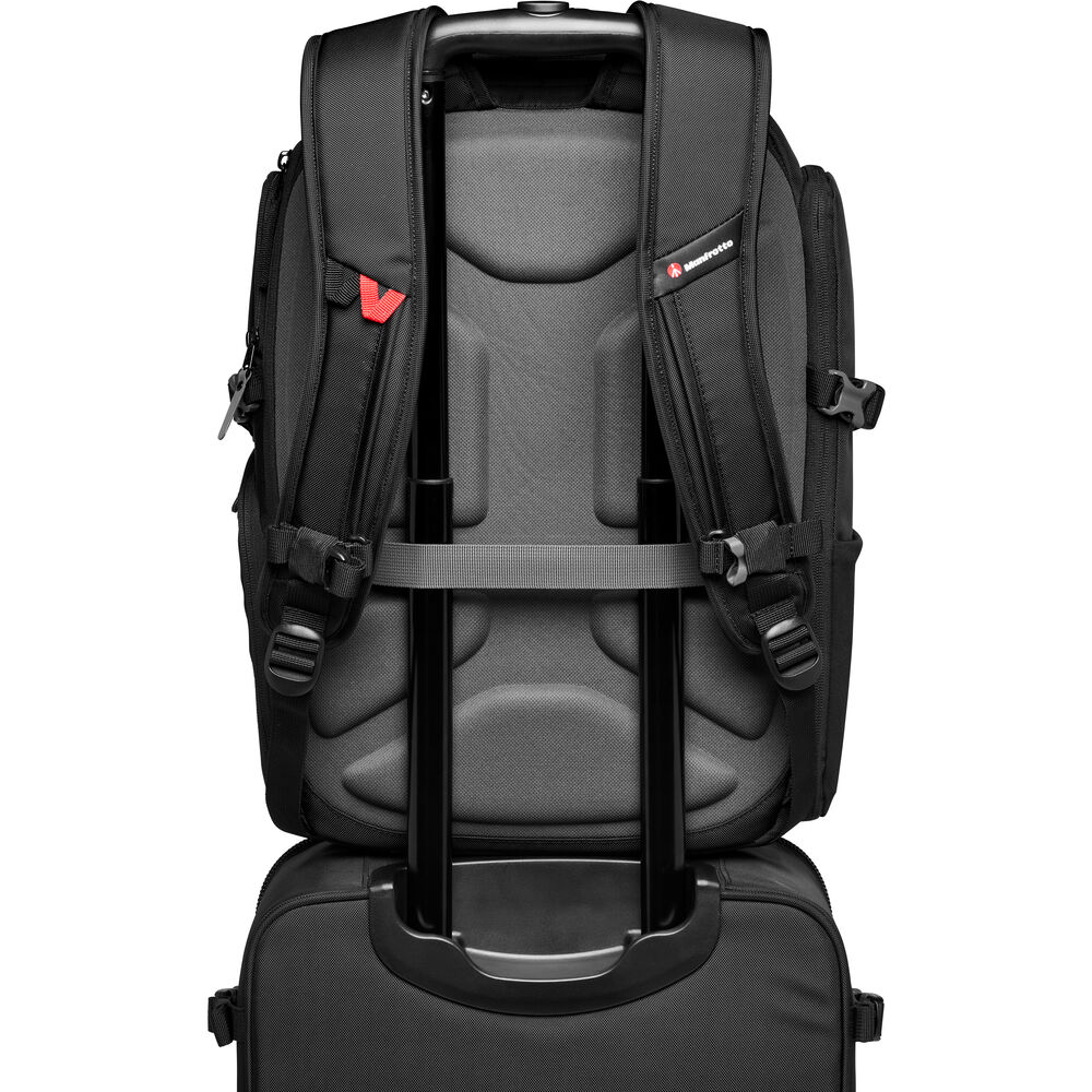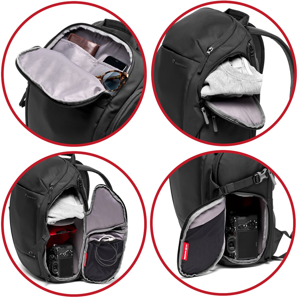 Store, protect, and transport a DSLR with an attached zoom, up to four additional lenses, accessories, and personal items, plus a laptop & tablet with the versatile, black Manfrotto Advanced Travel III 24L Camera Backpack. This third gen bag gets an update to their M-Guard protection system for your delicate camera gear with a customizable interior, 30/70 split between personal and photo items, and a separate tech compartment. This is the ideal bag for travel as it allows you to carry everything you need in a single pack.