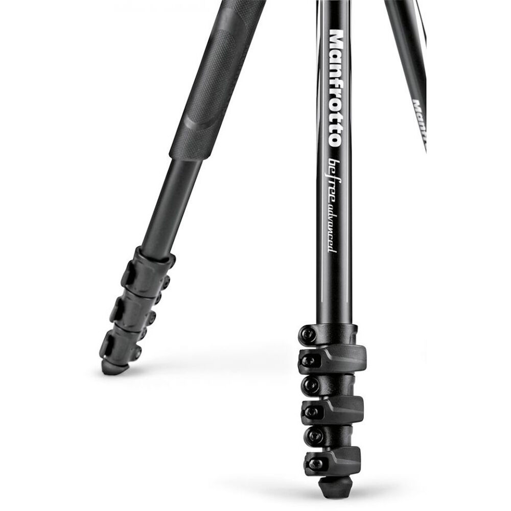 Each leg of the Befree Advanced is composed of four sections, which can be adjusted and securely locked into place with the QPL lever locks found on all segments. A side-pull selector allows you to set up the tripod at three different angle configurations, enabling low angle shooting with the simple push of a button. Complementing the legs is an equally sturdy center ball head, which offers a dedicated knob for panoramic movement as well as a friction control knob for precise control over the tension during use. The final element is a quick release plate, which offers dual compatibility for RC2 and Arca-type compatible systems, except for the Manfrotto 804-3W and MH804-3W tripod heads.