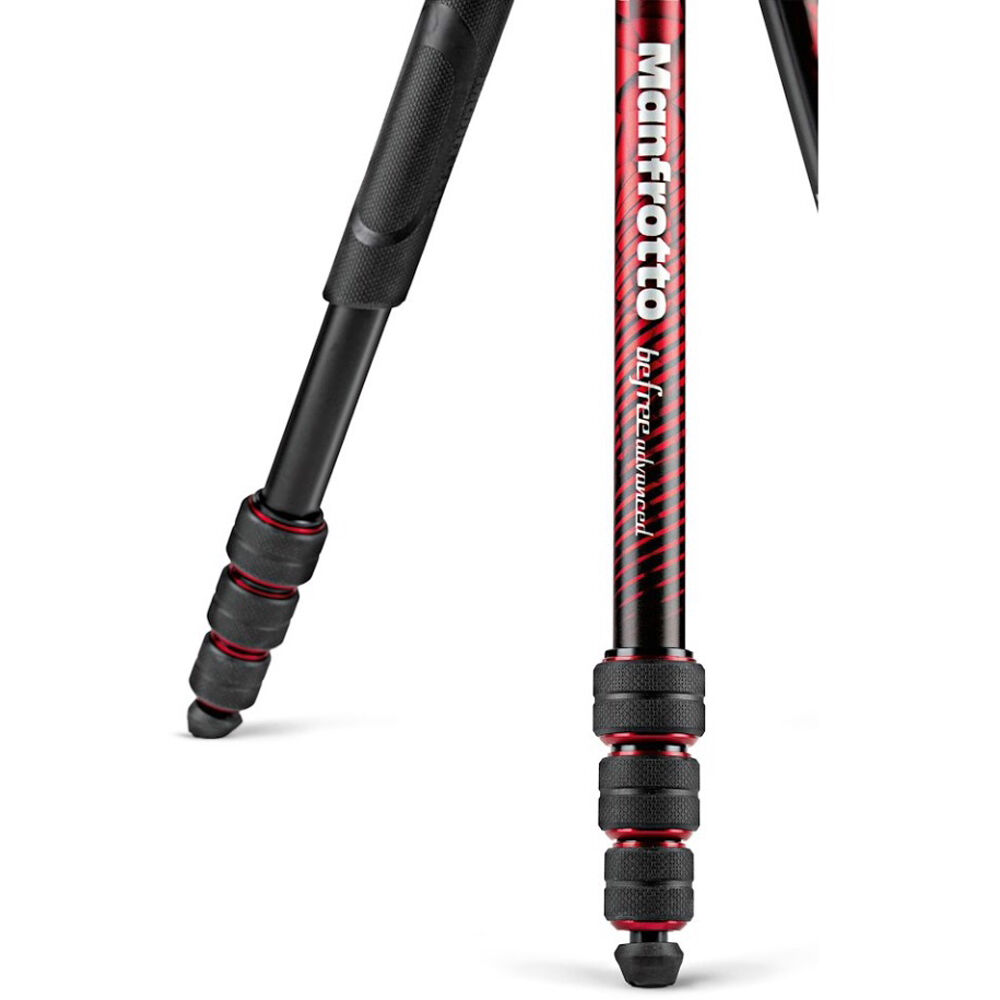 Sporting a 19.8 lb load capacity at a weight of only 3.4 lb, this red Befree Advanced Travel Tripod from Manfrotto is a robust support option that can serve as a convenient travel companion for professional photographers and passionate hobbyists alike. It is made of aluminum alloy and reaches a maximum height of 59.1" with its column extended, folding down to 15.7" in length for simplified transport in its included carrying case.