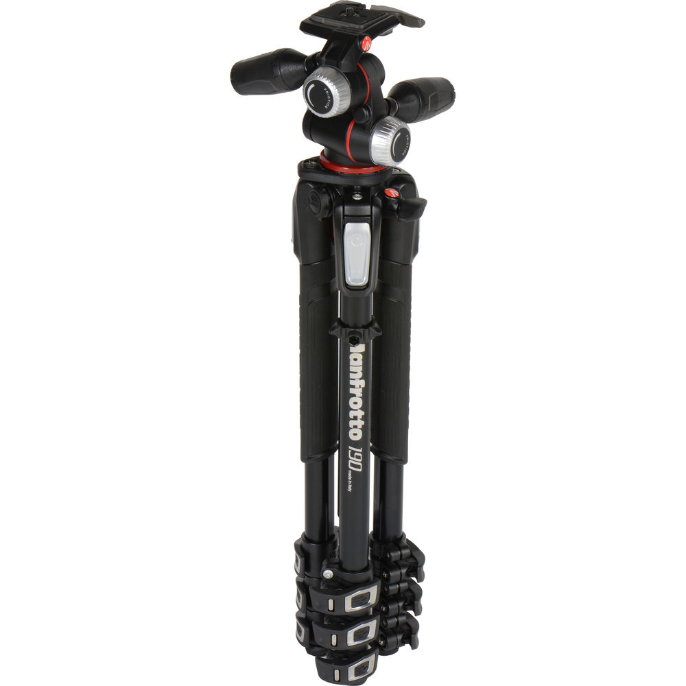 The Manfrotto MK190XPRO4-3W Aluminum Tripod with 3-Way Pan/Tilt Head combines the MT190XPRO4 tripod legs with the MHXPRO-3W 3-way pan/tilt head. The tripod has a load capacity of 26.5 lb, extends up to 68.1", and folds down to 24.4" for transport.