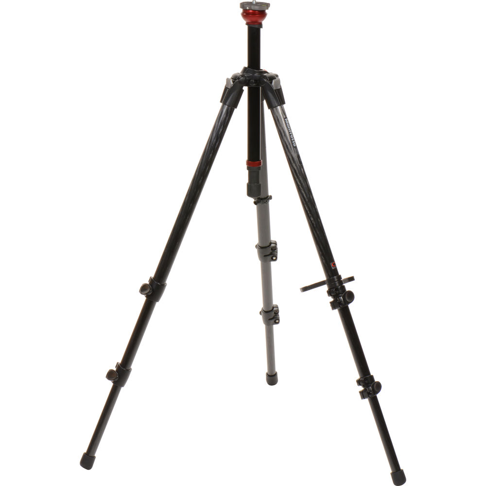 The tripod extends in two stages from 18.3 to 54.7" at the release of flip-lever lock clamps. Additionally, a center column is adjustable up and down to extend the maximum height to 64.6". The center column can also be removed entirely and used handheld with a camera still attached. The tripod legs are made of carbon fiber, which is lightweight in comparison to aluminum, absorbs vibrations better, and is immune to corrosion from water, including salt-water.