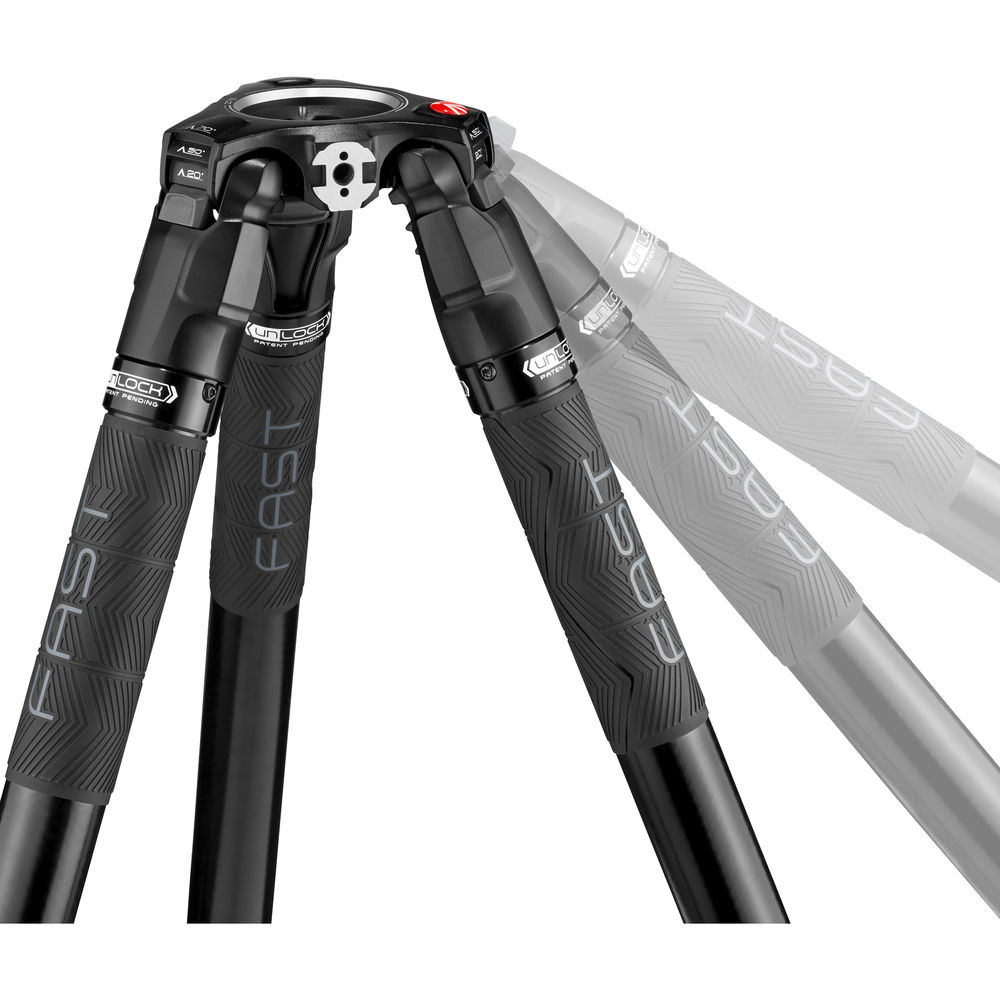 The Manfrotto 635 FAST Single Leg Carbon Fiber Tripod Legs have a 75mm bowl base and load capacity of just over 44 pounds. This tripod has a maximum height of just over 61", and with the legs spread wide a minimum operating height of 11". The three leg sections feature synchronized twist-lock leg locks, which provide for faster leg adjustments of the leg height. The bowl base has three mounting fittings compatible with both the ARRI anti-twist and Manfrotto anti-rotation systems for mounting accessories.