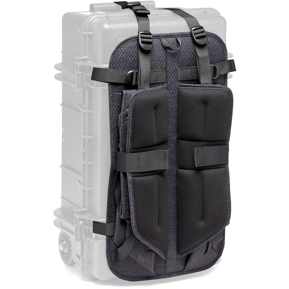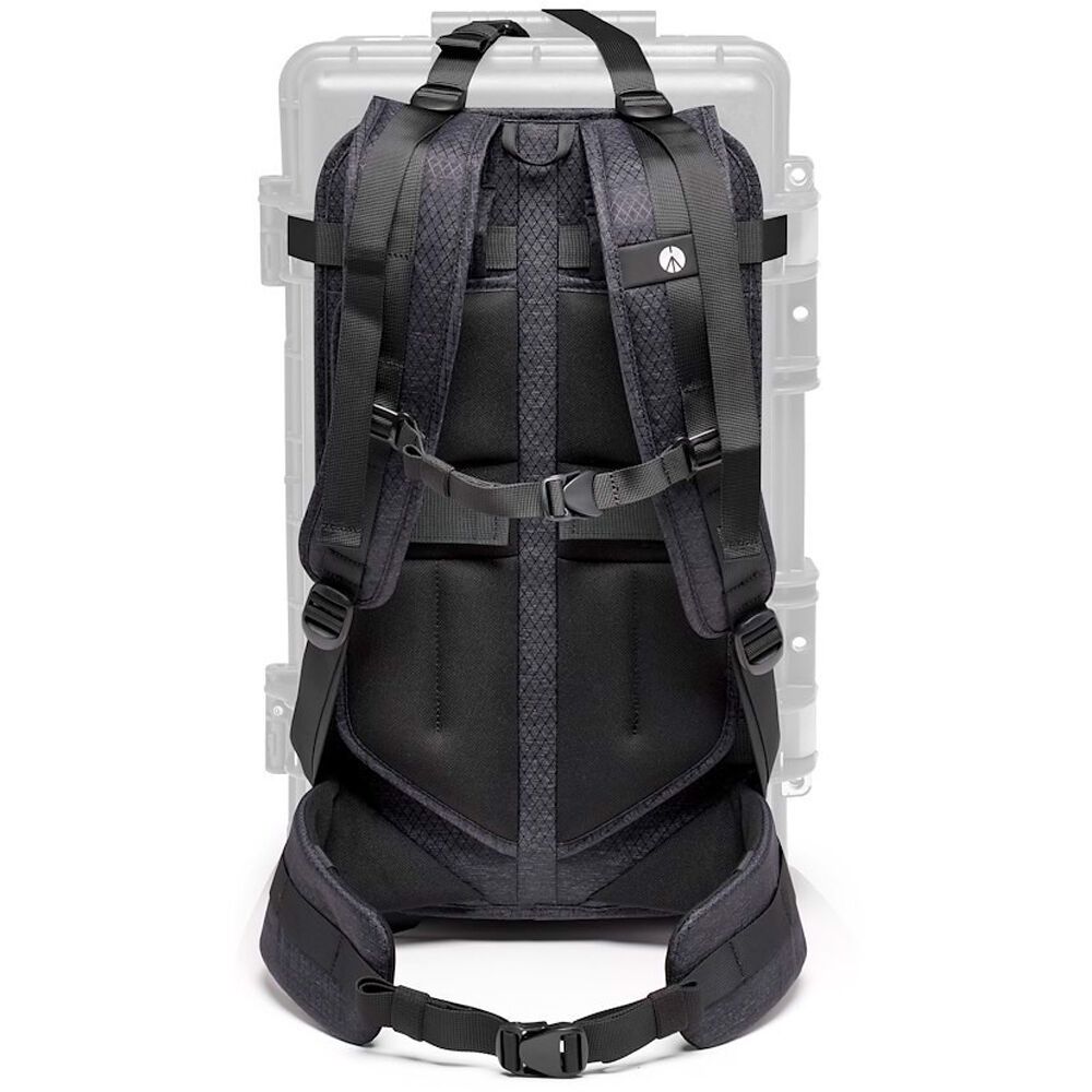Use the Manfrotto Pro Light Reloader Tough Harness System to wear their wheeled hard tough case as a backpack. This system evenly distributes the weight of the case, making it easier to navigate over rough, rocky, or uneven terrain. Outfitted with fully padded backpack straps, a stabilizing sternum strap, and a weight-bearing waist belt, the harness attaches to the case with four metal pins to ensure a secure connection.