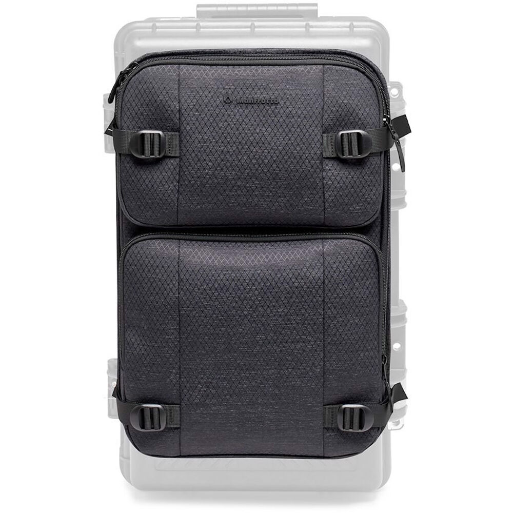 Designed specifically to fit onto their Tough series of cases, the Manfrotto PRO Light Reloader Tough Laptop Sleeve has four metal pins that secure the sleeve to your Manfrotto Tough case and expand its storage capability with modular ease. Separate laptop and tablet pockets separate your tech and will hold laptops up to 15 inches. Two accessory pockets let you carry cables, peripherals, and more. Its nylon shell is resistant to wear and water while a lightly padded polyester interior protects your delicate gear. If you need to run to a meeting, detach the sleeve from your case, snap on the shoulder strap, and use it as a slim standalone laptop bag.