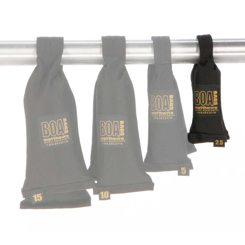 Grab a Matthews Boa Bag to help safely rig lights and modifiers as well as add weight to tripods and more. This 2.5 lb bag is split into two bags to easily hang or wrap around objects.