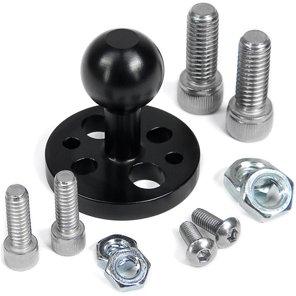 The Mafer Cheese Plate Tip for Infinity Arm from Matthews is an accessory for the Infinity Arm's ball and socket system of tips. The Cheese Plate Tip has several holes in its flat disc to mount other standard cheese plates or camera hole patterns with 1" center-to-center holes. It also easily mounts to Mafer or Super Clamps and similar grip gear. The tip comes with two 3/8" bolts and nuts, two 1/4-20" bolts and nuts, and two #10-32 screws.