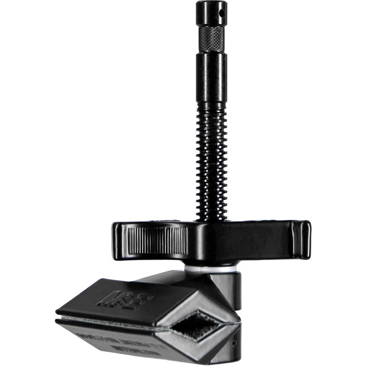 This 2" , black/chrome Matthellini End Clamp from Matthews is ideal for rigging lights, fixtures, cameras, and more to pipe, lumber, set walls, and other surfaces while minimizing unwanted and distracting reflections. The 2" jaws have been designed so they can easily grip round, square, or rectangular tubing. The clamp has a 5/8" baby pin for lights and accessories with a 5/8" receiver.