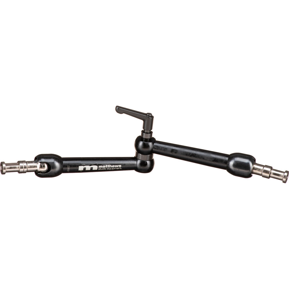 Mount almost any production accessory anywhere with the Matthews Medium NOGA Articulating Arm. When fully extended, this arm will reach 10.5 inches, and because it's able to hold up to 13.2 pounds, lights, modifiers, and even cameras themselves can be secured with a twist of the lever. Each end of the arm terminates in a 5/8" baby-pin, which will accept many standard lighting and grip accessories including clamps and stand adapters.