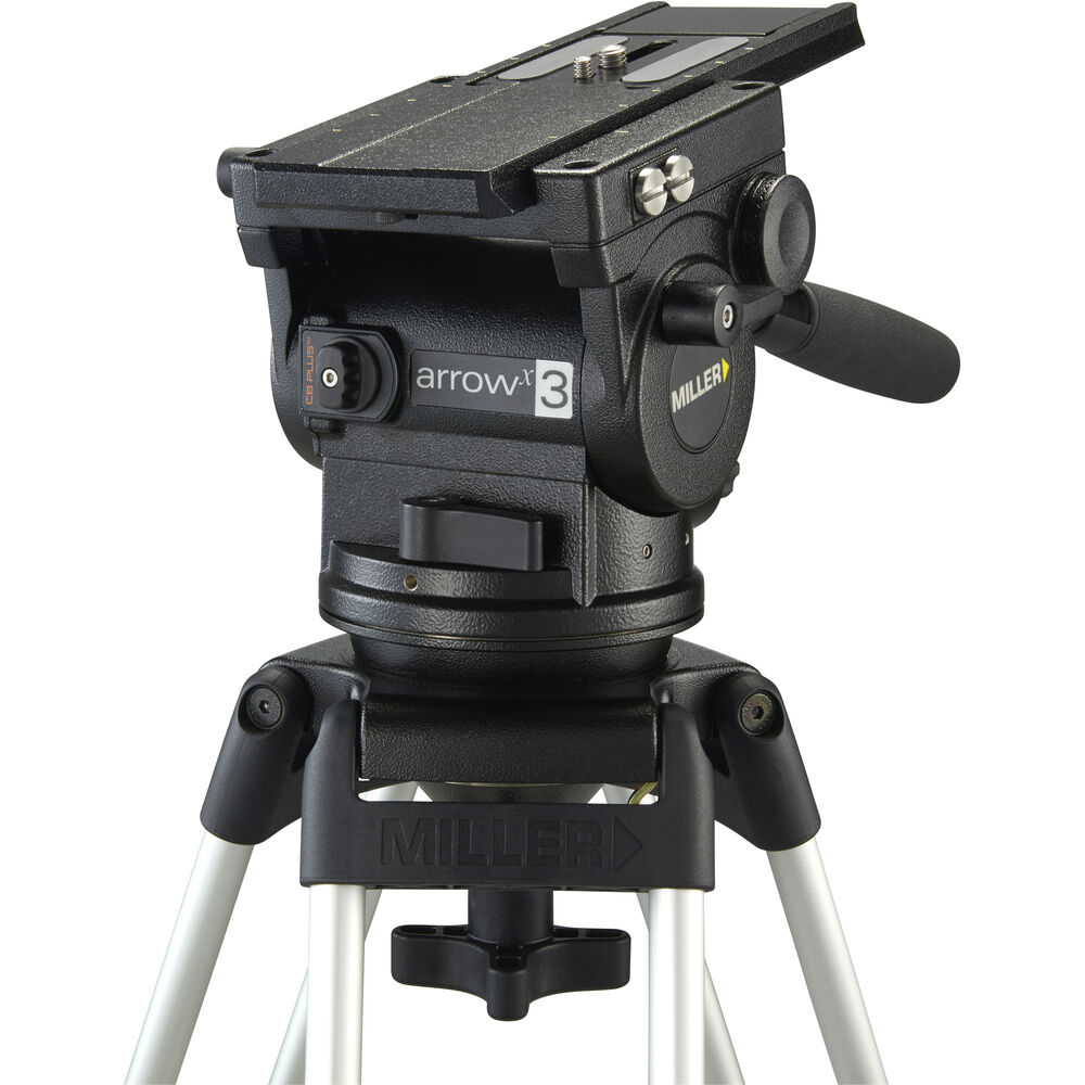 The Arrowx 3 Fluid Head from Miller offers a 2.2 to 41.8 lb payload range and five selectable pan-tilt fluid drag positions, making it suitable for news gathering and documentaries. It features precision fluid drag with a 16-position CB Plus counterbalance system. CB Plus is a sequential counterbalance design, featuring eight larger counterbalance steps that allow you to quickly and efficiently achieve the required counterbalance position. The system's one flick switch located at the front of the head adds a half step between each of the eight larger steps enabling counterbalance fine-tuning when required.