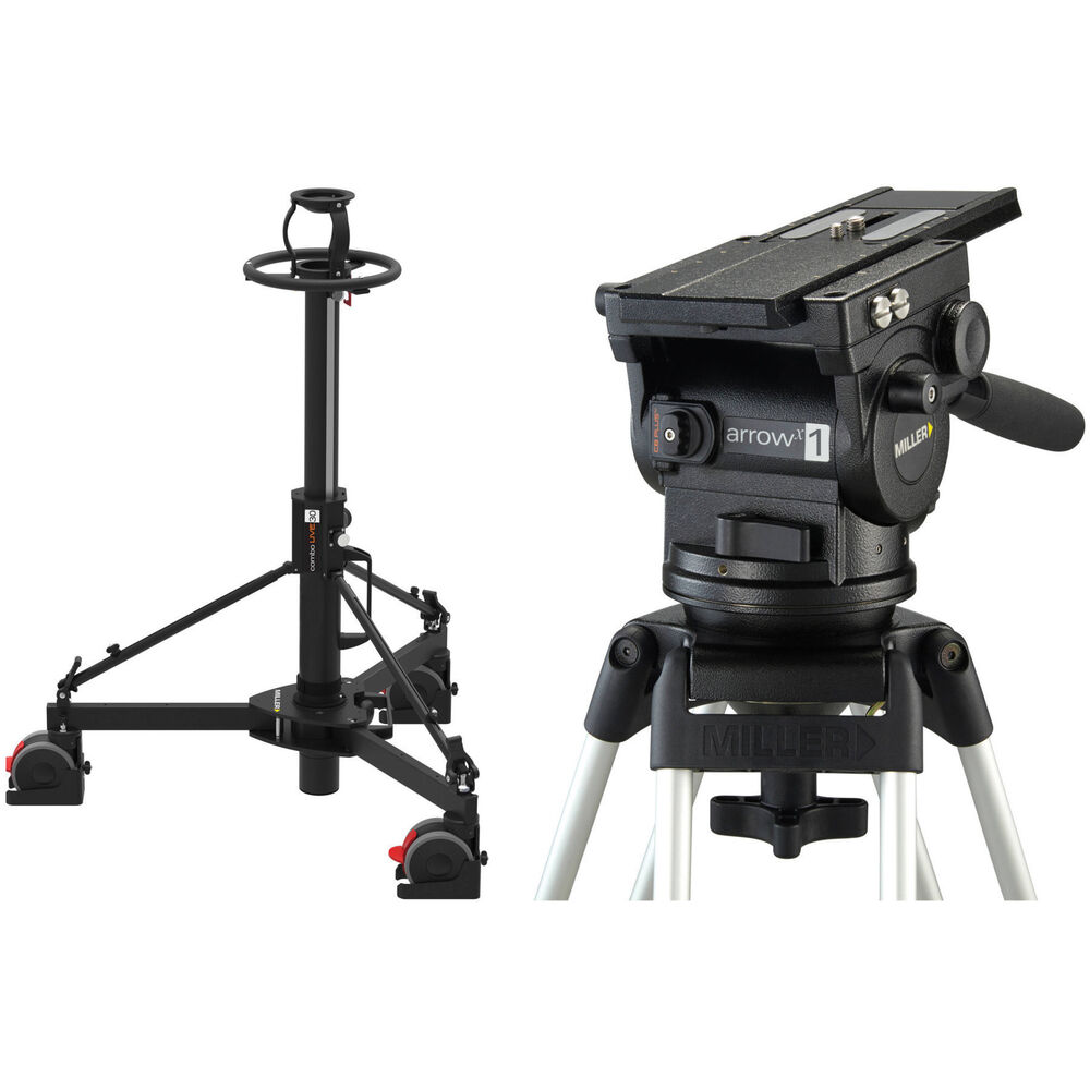 The Arrowx 1 Combo Live 30 Pedestal System from Miller is a floor and dolly system with a 100mm half-ball fluid head. It combines the smooth operation and sleek design of the Arrowx 1 Fluid Head with the sturdy and compact form factor of the Combo Live 30 Pedestal System.