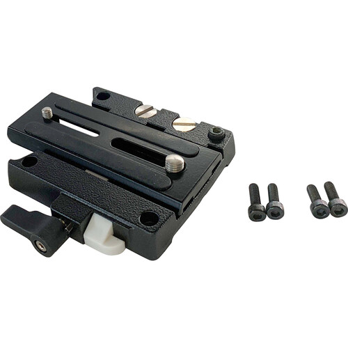 Outfit your Miller video head with a quick release system using this Baseplate Assembly. The baseplate assembly is compatible with Miller CompassX and ArtX fluid heads and comes with a 1205 camera plate. This side-loading baseplate assembly features 2.4" of sliding range, nonslip pads, and storage for the included spare 1/4"-20 and 3/8"-16 camera screws.
