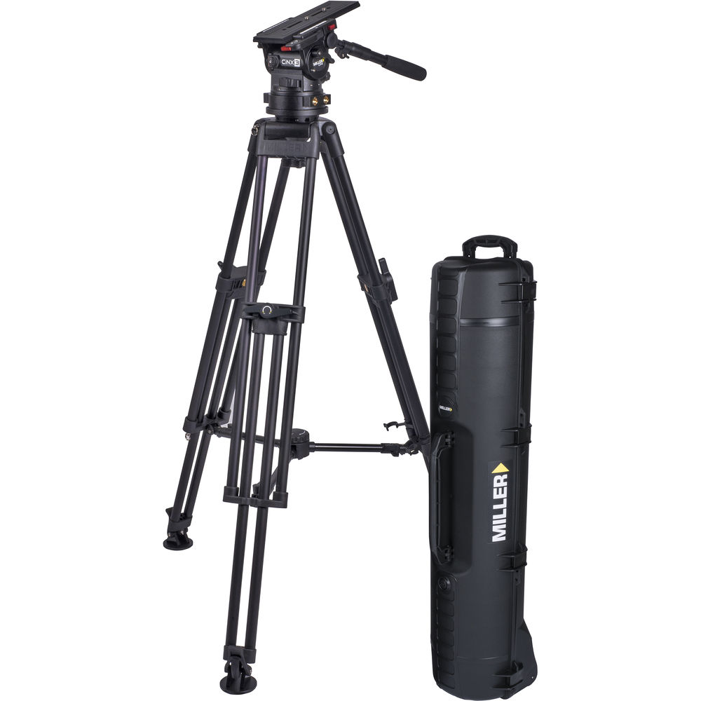 This Miller CiNX 3 and HDC 100 1-Stage Tripod System features the CiNX 3 fluid head, 100mm bowl HDC 100 aluminum tripod legs, mid-level spreader, and a wheeled carry case. The included version of the HDC 100 tripod has spiked feet and is mid-spreader ready. Rubber shoe pads are also included as part of this bundle.