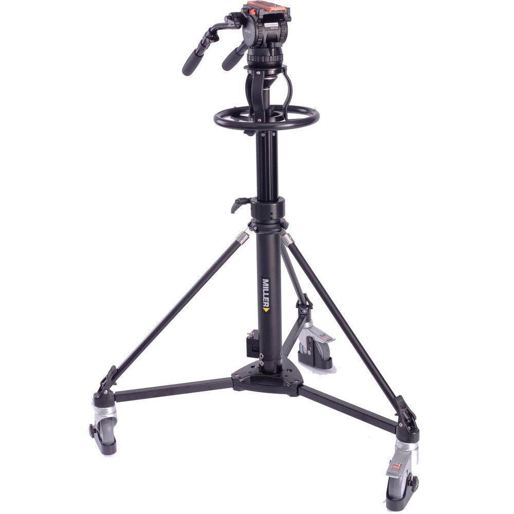 The Combo Pedestal System from Miller is a compact, portable pedestal system for 100mm ball fluid heads. The pedestal features a load capacity of 66 lb, a 13.8" stroke, and an adjustable air column system with a height range of 35.4 to 49.2". The large 4.9" wheels move smoothly and are fitted with individual brakes.