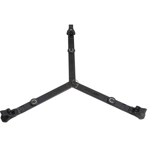 The Miller 470 Ground Spreader works with all Sprinter II tripod legs. The spreader features pullover rubber stirrups that securely hold your tripod's feet, holding your legs fast while providing grip on hard surfaces. Once mounted, you can adjust the length of each of the spreader's arms individually as needed without detaching the spreader from the tripod. The spreader's flexible construction enables your tripod to remain stable on flat or uneven terrain. A pull ring in the center of the spreader helps fold the spreader up into your tripod when you close the legs.