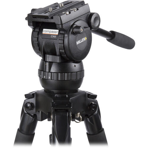 Mount your DSLR, mirrorless, cine, or ENG camera using this complete CX6 Head and 75 Sprinter II Carbon Fiber Tripod with Ground Spreader and Case system from Miller for your studio or field video production. The system includes a CX6 fluid head, a fixed-length pan handle, a 75 Sprinter II carbon fiber tripod, a ground spreader, and a soft carry case.