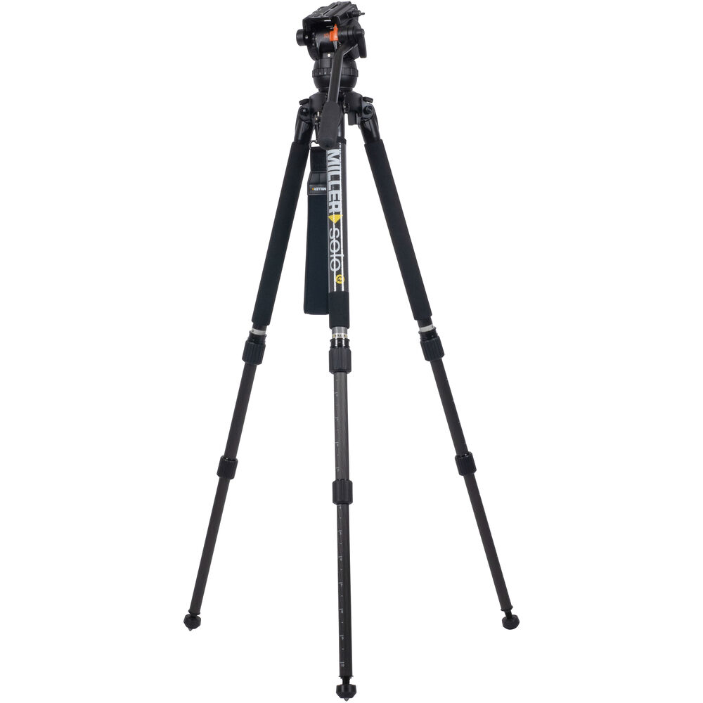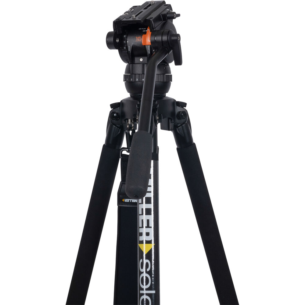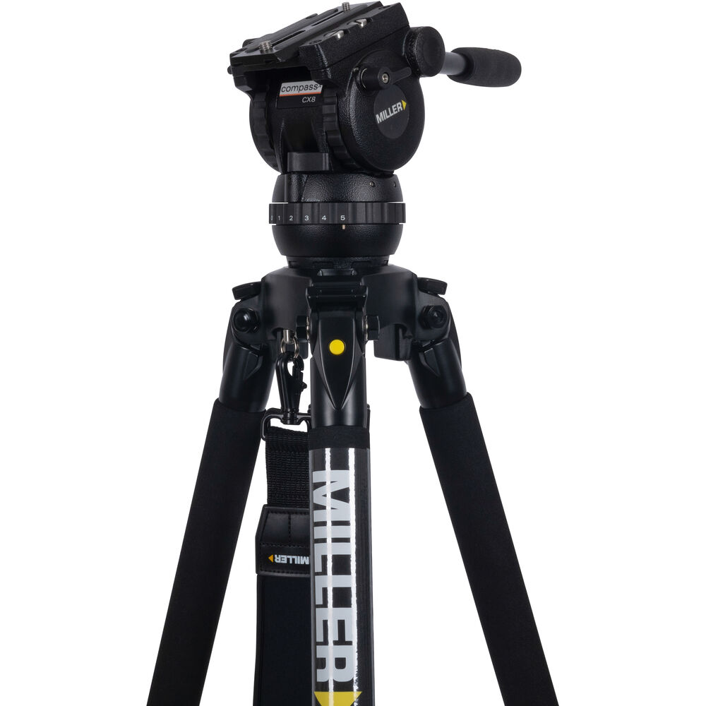 The Miller CX8 SOLO-Q 75 2-Stage Tripod is a compact and lightweight tripod system that brings smooth yet precise pan and tilt control to cameras and rigs weighing up to 26.4 pounds. It features the CX8 fluid head, carbon fiber legs, a carry strap, and a tripod bag for storing and carrying all your gear.