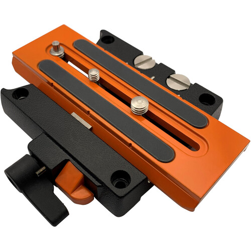 This side-loading baseplate features 2.1" of sliding range, nonslip pads, and storage for the included spare 1/4"-20 and 3/8"-16 camera screws.