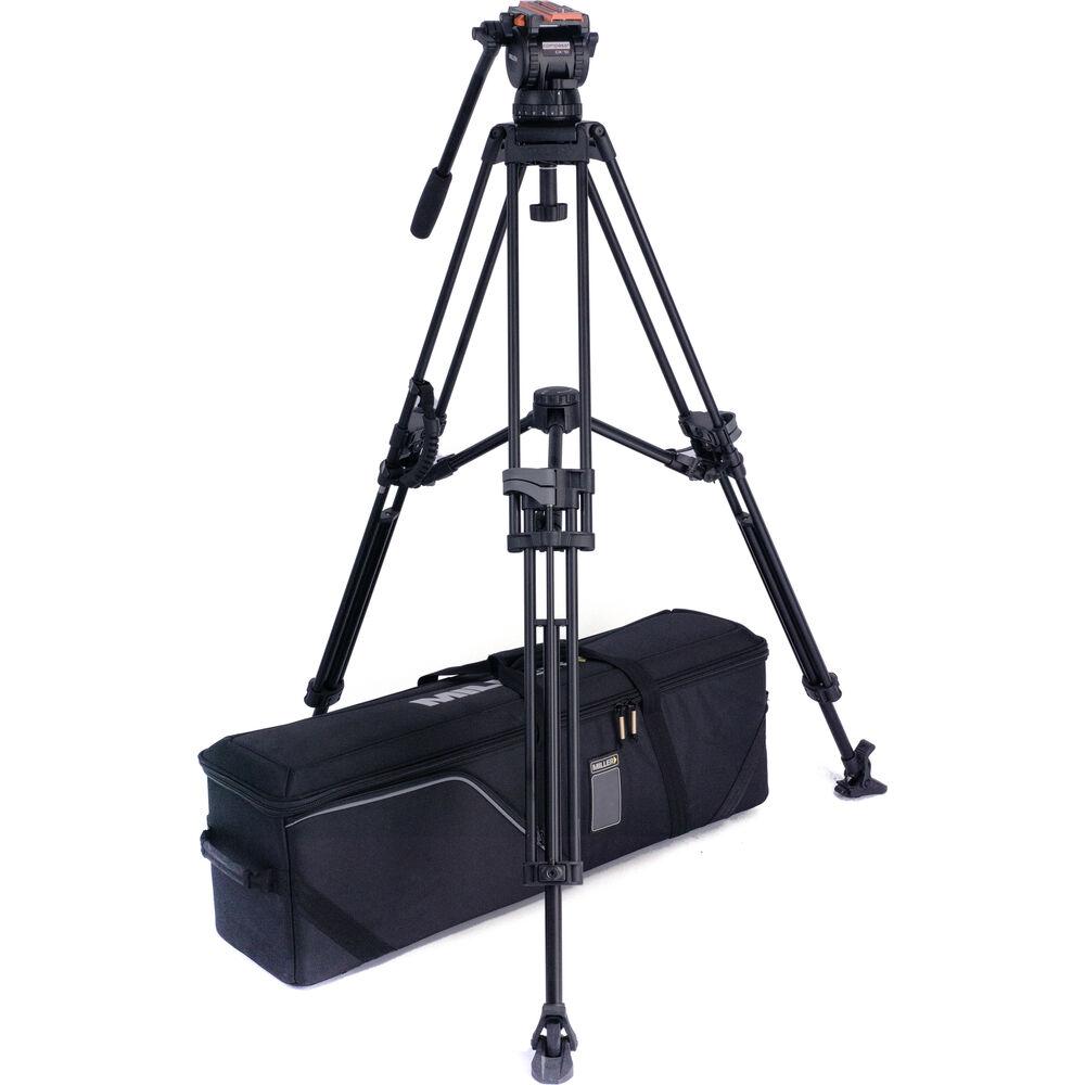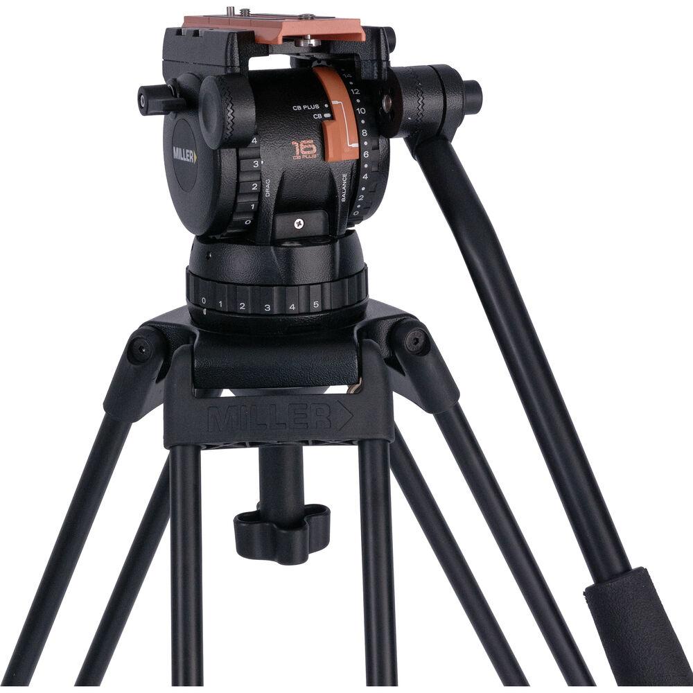 The Miller Sprinter II 2-Stage Alloy Tripod is a quick-setup solution for a tripod head with 100mm ball base. Its light weight, flip-locks, and rigid construction allow for durability without compromising usability in ENG, EFP, and other pro video applications. Unlike many traditional multi-stage designs, both flip-locks are located on the same section for easy reaching, no matter the height setting. The fast setup is complemented by an in-line carry handle, for portability on set or in the field. Compatible spreaders, rubber feet, and dollys are available separately.