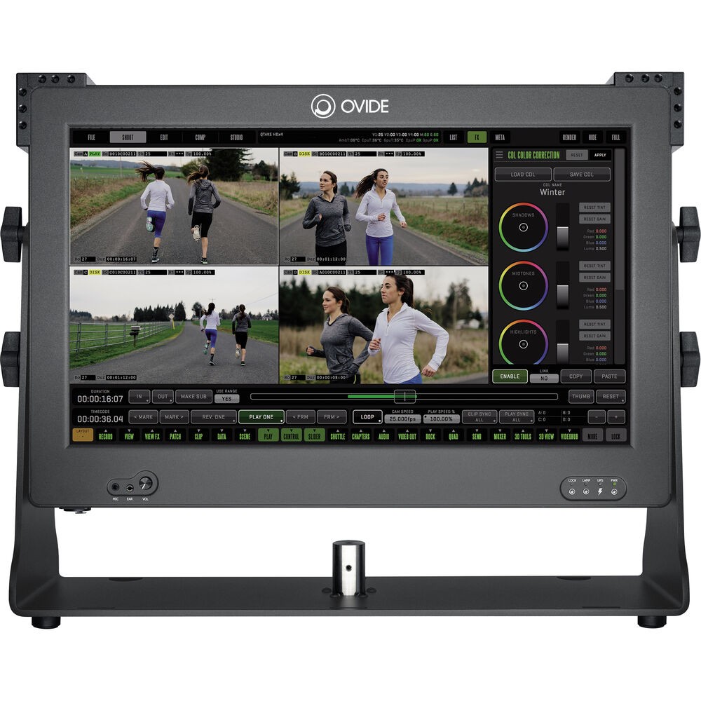 The Smart Assist M200 Quad from OVIDE is a versatile 22" monitor with a capacitive touchscreen display. Boasting 500 cd/m² brightness and DCI 4K screen resolution, the M200 offers four SDI inputs and 12 SDI outputs for video and two 3-pin XLR inputs and two outputs for analog audio. Two removable 2TB drives are included with the monitor.