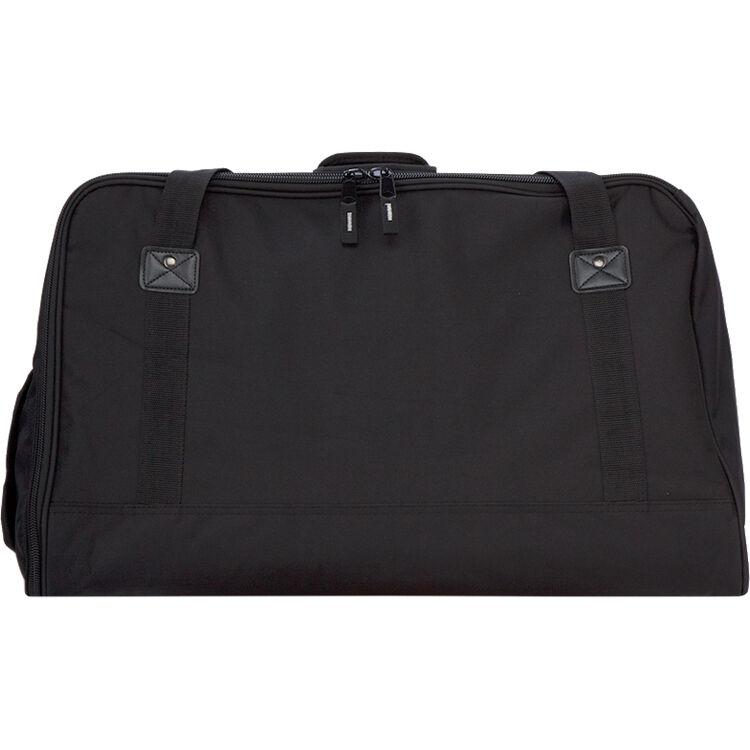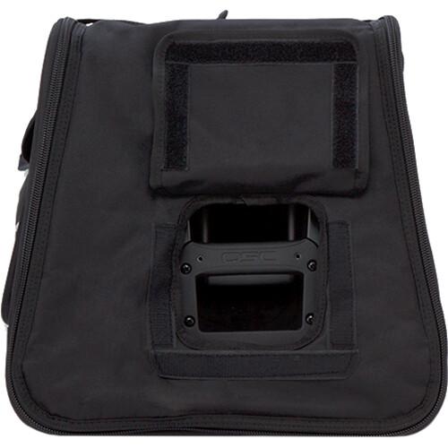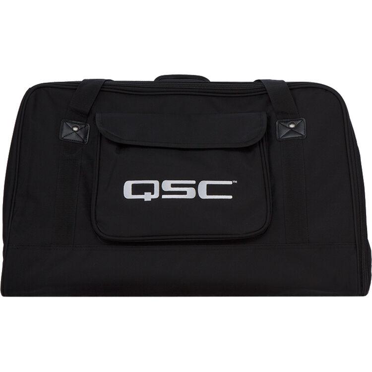 The QSC K12 TOTE Soft Tote Bag (Black) is a weather-resistant, heavy-duty Cordura nylon bag designed to carry and protect a K12 active loudspeaker. It has a pocket in front for wires and cables. The tote is carried by 2 strap handles with an overlapping grip.