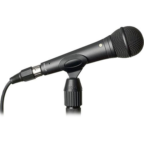 The Rode M1 is a handheld cardioid dynamic microphone designed for reliable reproduction of vocals, speech, guitars, and drums in concert venues, houses of worship, and live stage applications. Its dynamic element utilizes a neodymium magnet for high output without excessive preamp gain and delivers a frequency response of 75 Hz to 18 kHz. The resulting tone is smooth and defined with a mild bump at 200 Hz and a gentle rise from 4 to 10 kHz.
