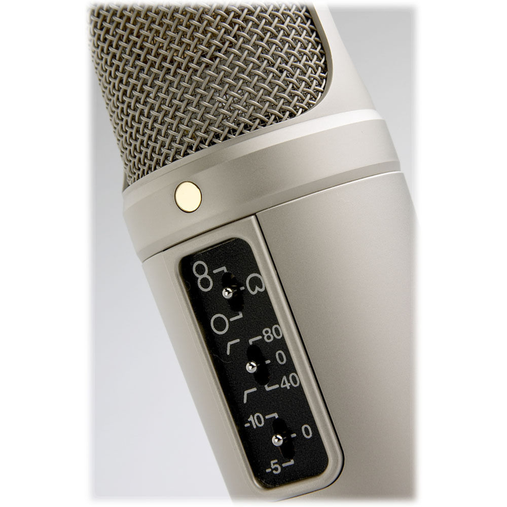 With low noise being a top priority of the NT2-A, its 1" gold-sputtered capsule is internally shock-mounted to further isolate it from handling and vibration noise. Enhancing its professional character are the onboard pad (-5 or -10 dB) and high-pass filter (40 or 80 Hz) settings, which help avoid distortion and bass builup. Since it can run on 24 or 48 VDC phantom power, the NT2-A can be used with a variety of professional and entry-level XLR mic preamps.