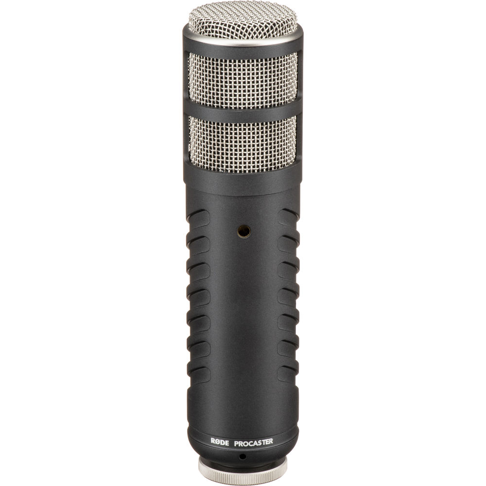 The Procaster Broadcast-Quality Dynamic Microphone from Rode is designed for capturing speech in broadcast radio, voice-over recording, podcasts, and similar applications. It features a tight cardioid polar pattern and tailored frequency response that result in optimum speech reproduction without off-axis noise. The all-metal construction, internal pop-filter, and internal shockmount further minimize handling noise and contribute to the microphone's durability. The package includes a microphone stand mount and a zip pouch.
