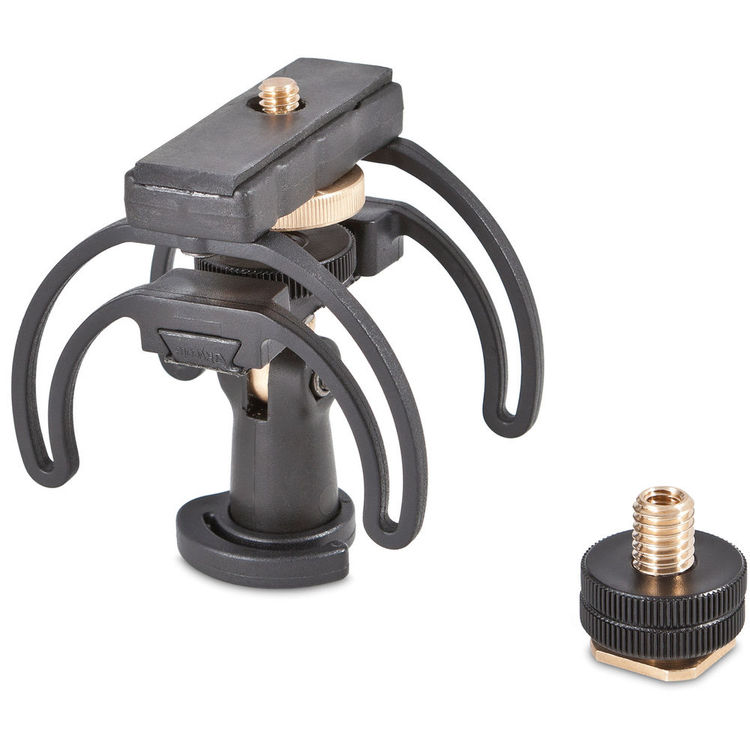 The suspension mount and windjammer minimize the impact that handling and wind noise can have on a recording, while the soft-grip handle provides extended reach and comfortable handling. The 180° swivel adapter connects to the recorder's threaded mounting socket and allows you to point the recorder exactly where you want it for clear audio pickup.