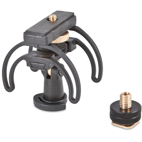 The suspension mount and windjammer minimize the impact that handling and wind noise can have on a recording, while the soft-grip handle provides extended reach and comfortable handling. The 1/4" to 3/8" swivel adapter connects to the recorder's threaded mounting socket, and allows you to point the recorder exactly where you want it for clear audio pickup.