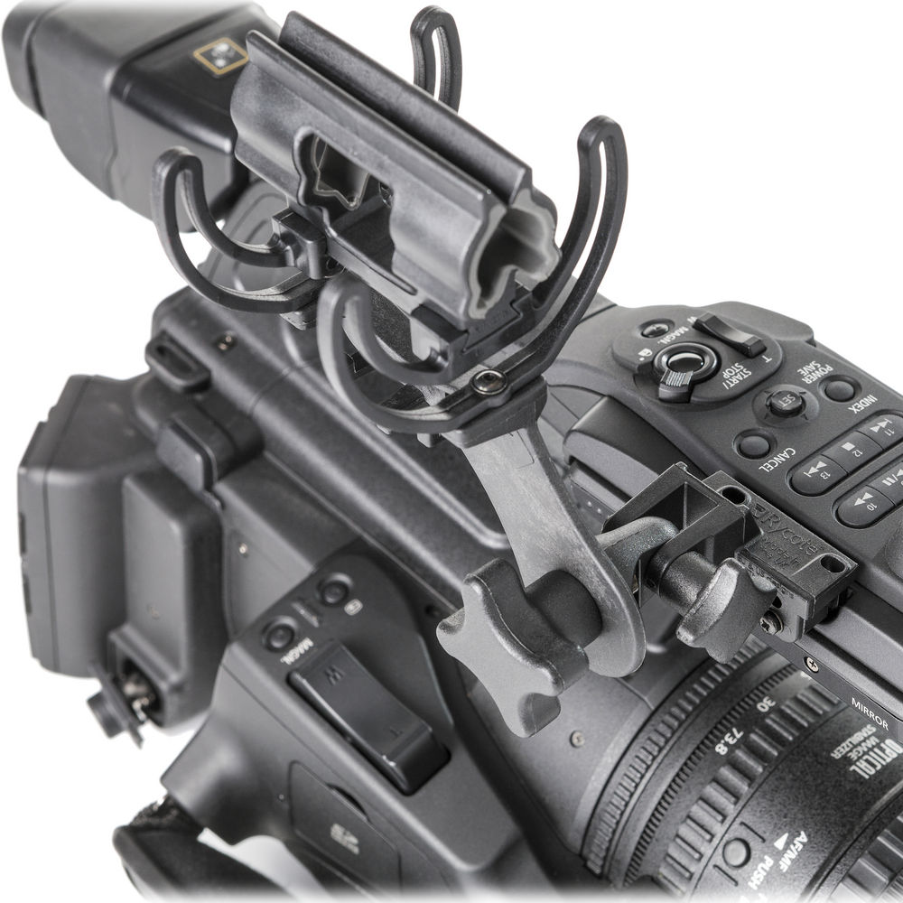 The Rycote Softie Lyre Mount with MHR replaces the built-in or accessory mic mount on your camera. It includes three sets of metric screws as well, which allow it to be connected directly to most common camcorders, including the Panasonic DVX-series, Sony NXCAM, DSR, HVR, PMW and HDR-series, many Canon X-series models and more.