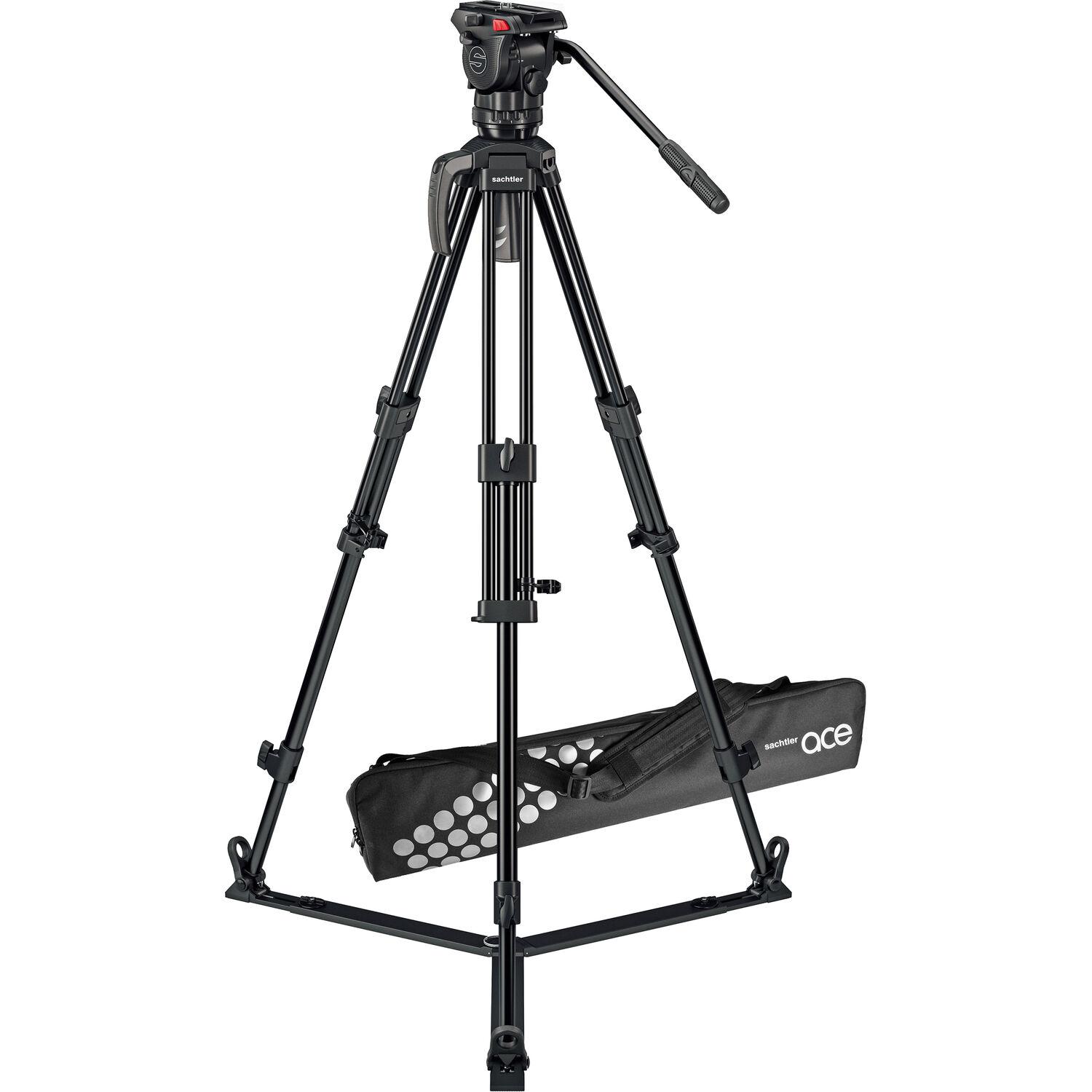 The 75/2 Mark II Aluminum Tripod System with Ace M Fluid Head & Ground Spreader from Sachtler pairs the Ace M fluid head with the aluminum 75/2 tripod legs and a ground spreader. The system has a load capacity of 8.8 lb designed to support ultra-light camcorders and DSLR/mirrorless camera builds. The tripod has a total working height range of 22.8 to 68.1" thanks to the included ground spreader.