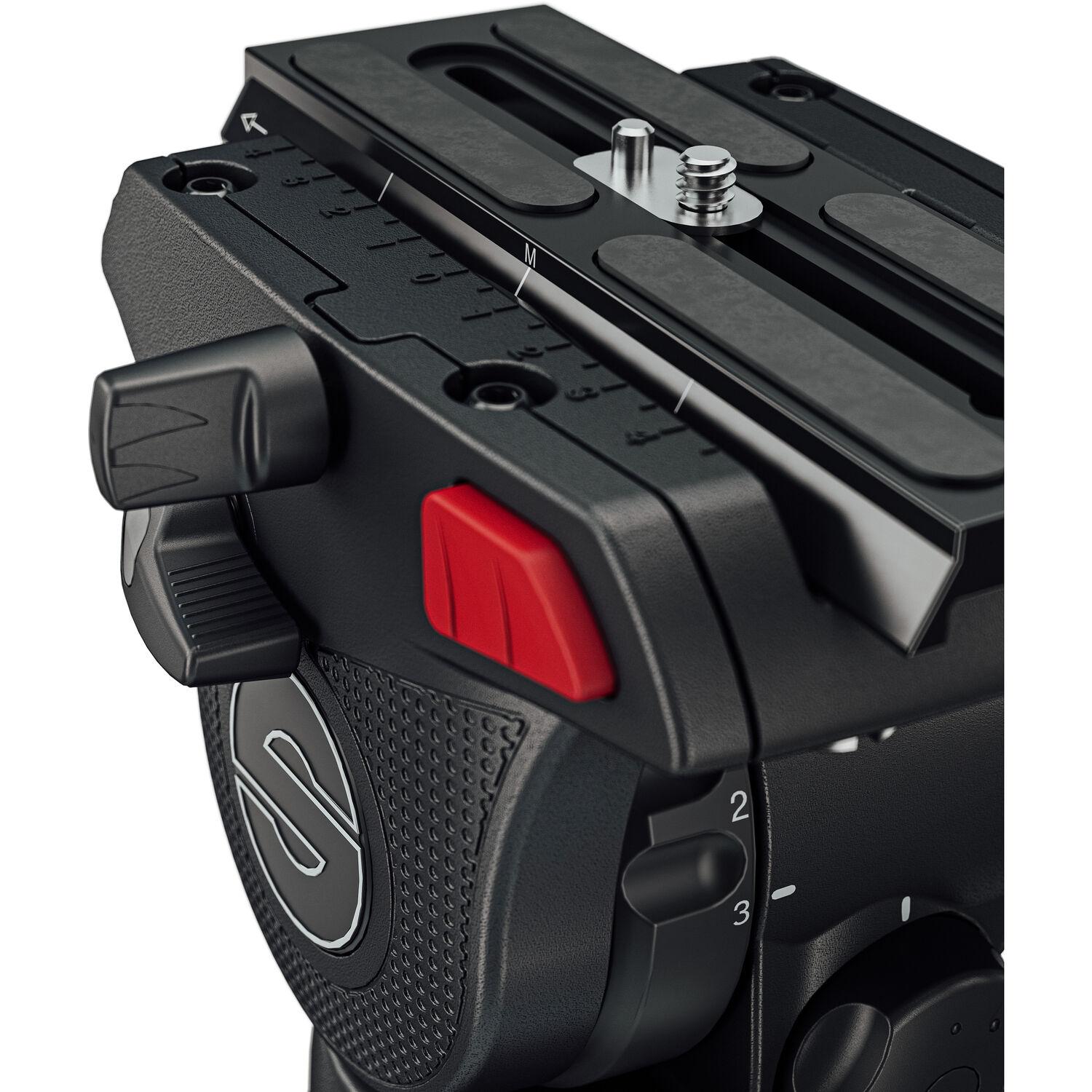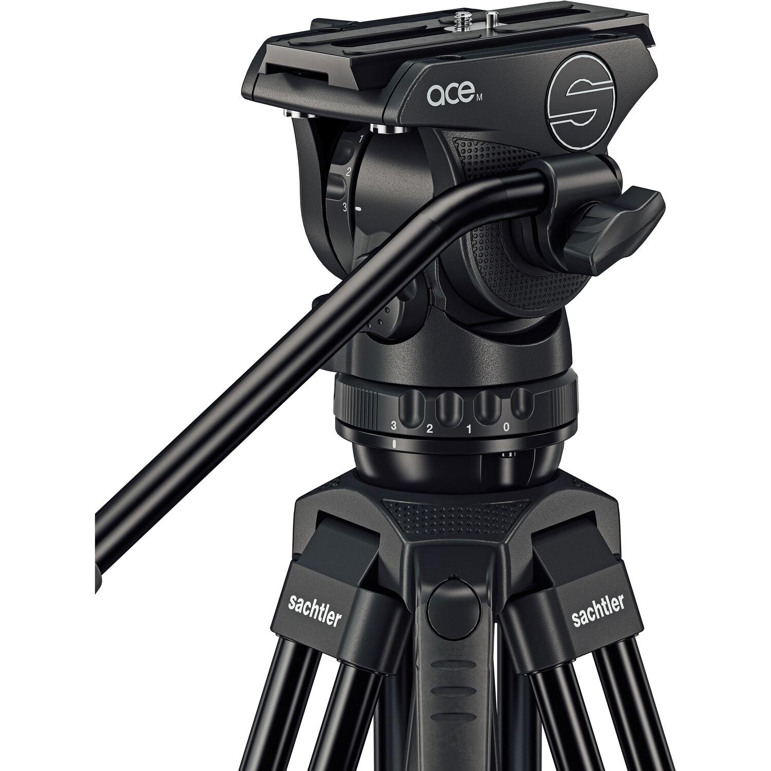 A 75mm bowl and three 3/8"-16 mounting threads help attach the Ace M fluid head. Adjust the fluid head's 5 + 0 steps of counterbalance, 3 + 0 steps of pan/tilt drag, and +90° to -75° tilt range for intuitive framing of your shots. A slide-in balancing plate with a 1.4" adjustment range makes balancing your rig a breeze. Use the carrying case and handle to transport the tripod to the set.