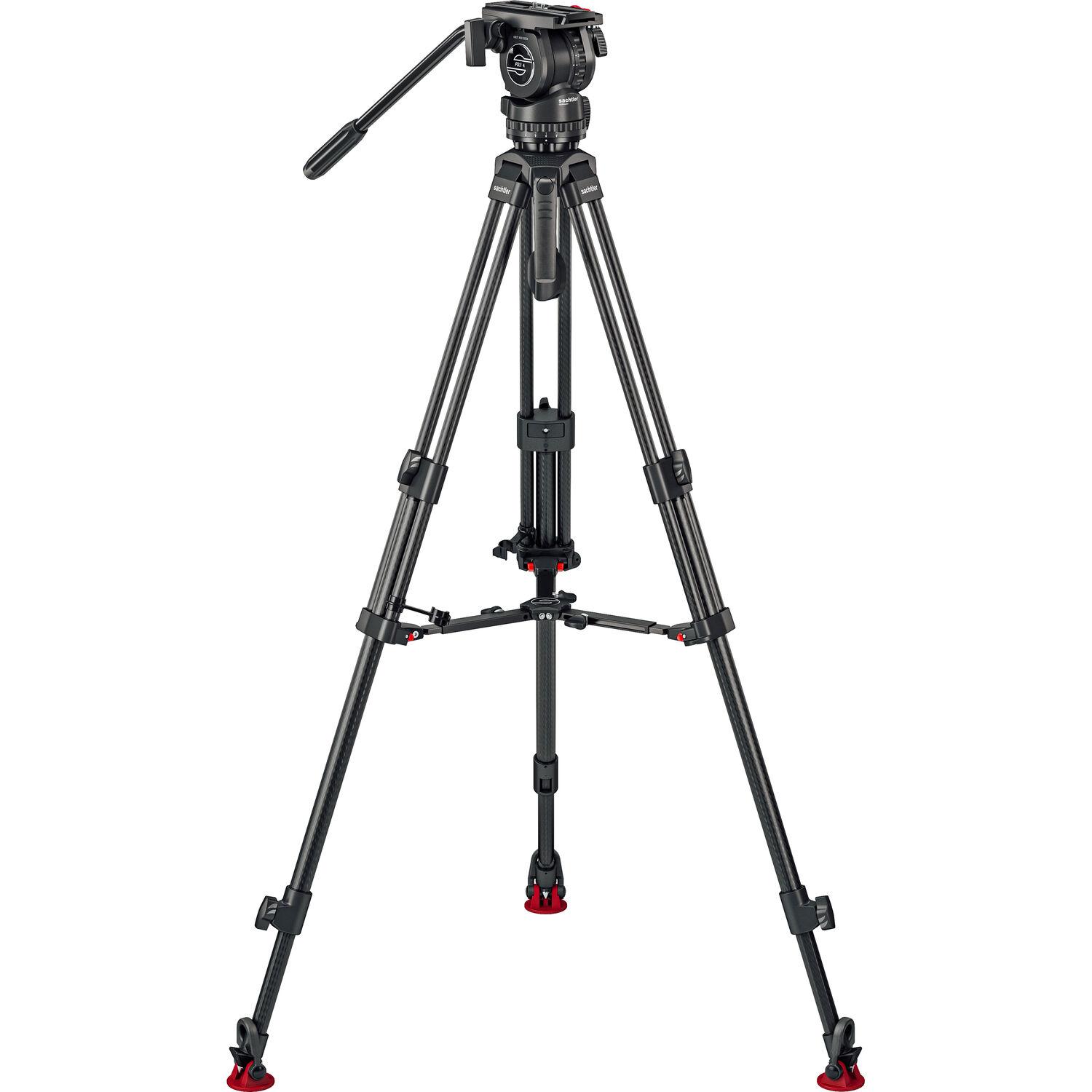 The 75/2 Mark II Carbon Fiber Tripod System with FSB 4 Fluid Head & Mid-Level Spreader from Sachtler pairs the FSB 4 fluid head and the aluminum 75/2 tripod legs with a mid-level spreader. This kit offers an 8.8 lb load capacity for midsized camera rigs, as well as a sliding camera plate and 5-step counterbalance. Carry the system with the included handle and bag for easy transport to the set.