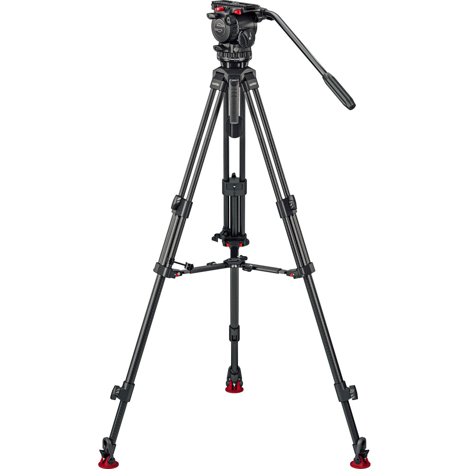 The 75/2 Mark II Carbon Fiber Tripod System with FSB 6 MK II Fluid Head & Mid-Level Spreader from Sachtler pairs the FSB 6 MK II fluid head and the carbon fiber 75/2 tripod legs with a mid-level spreader. This kit offers a 17.6 lb load capacity for midsized camera rigs, as well as a sliding camera plate and 5-step counterbalance. Carry the system with the included handle and bag for easy transport to the set.