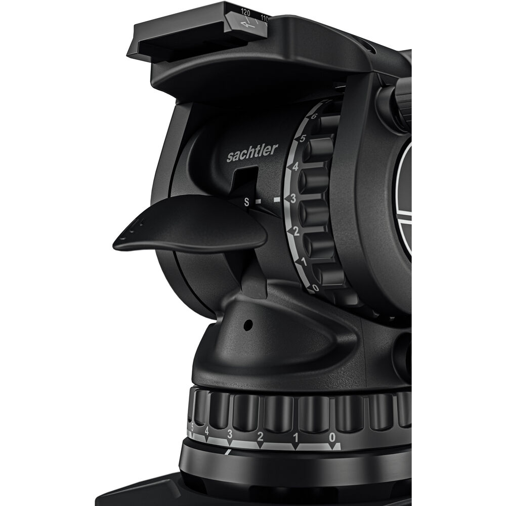 Mount your camera using the included Sideload Plate S that has both a 1/4-20 camera screw and a locating pin to prevent twisting. With a sliding range of 4.7", this head balances quickly to accommodate variously configured rigs. The Sachtler aktiv10 head also features a detachable pan bar that can be mounted onto the rosettes on either the right or left side of the head.