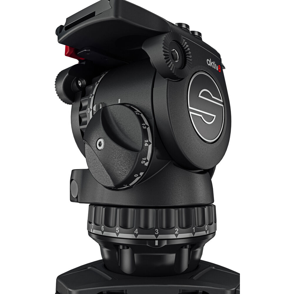 Mount your camera using the included Sideload Plate S that has both a 1/4-20 camera screw and a locating pin to prevent twisting. With a sliding range of 4.7", this head balances quickly to accommodate variously configured rigs The Sachtler aktiv8 head also features a detachable pan bar that can be mounted onto the rosettes on either the right or left side of the head.