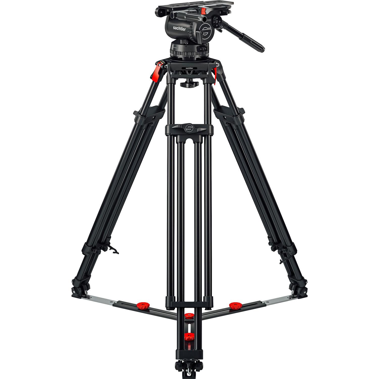 The Cine 150 Ground-Level Tripod System with Cine 30 Fluid Head from Sachtler pairs the Cine 30 fluid head and the Cine 150 long tripod legs with a ground spreader. This kit offers a fluid head with a 110 lb payload for heavy-duty camera rigs with attached accessories, as well as a sideload camera plate, 18 steps of counterbalance, and nine steps of pan/tilt drag.