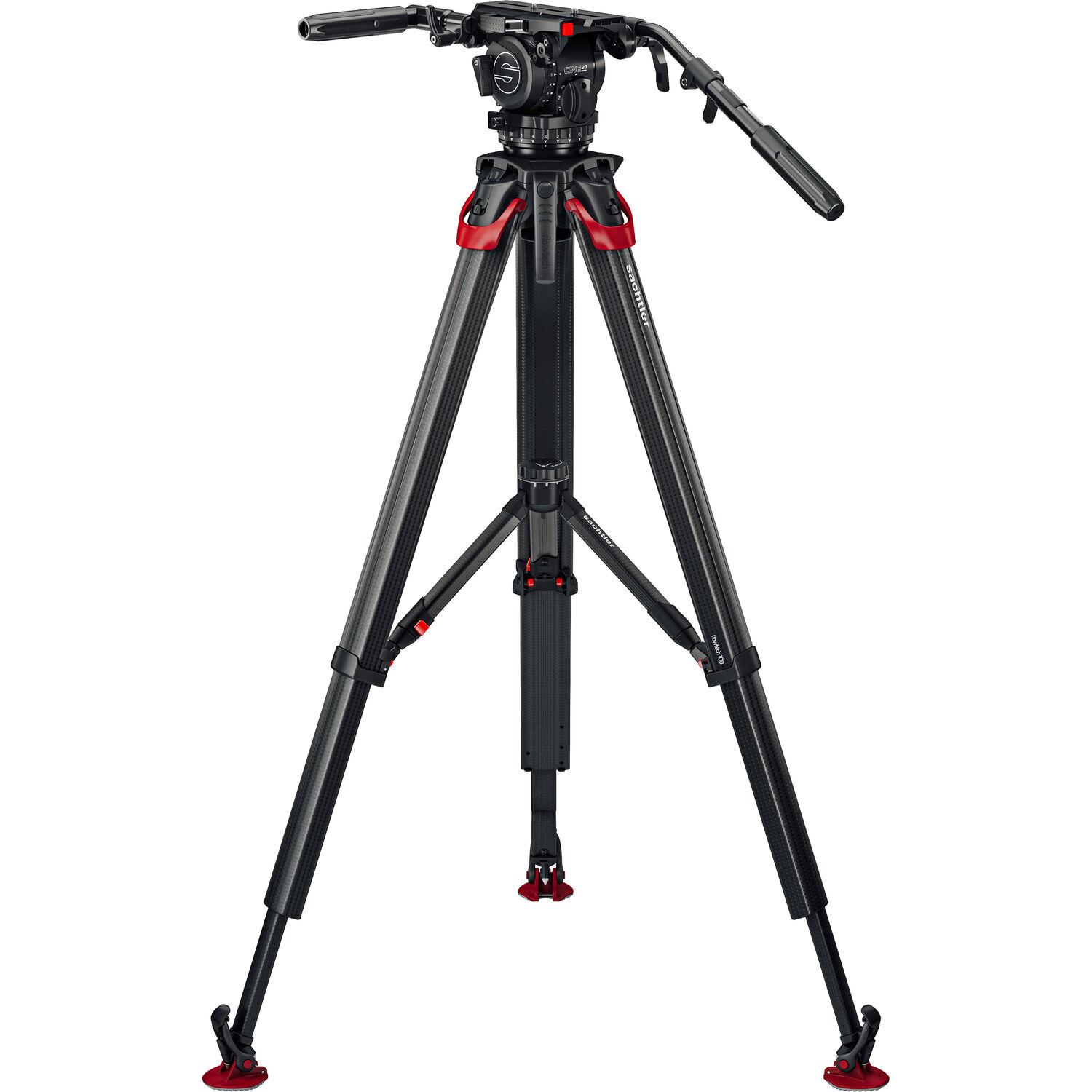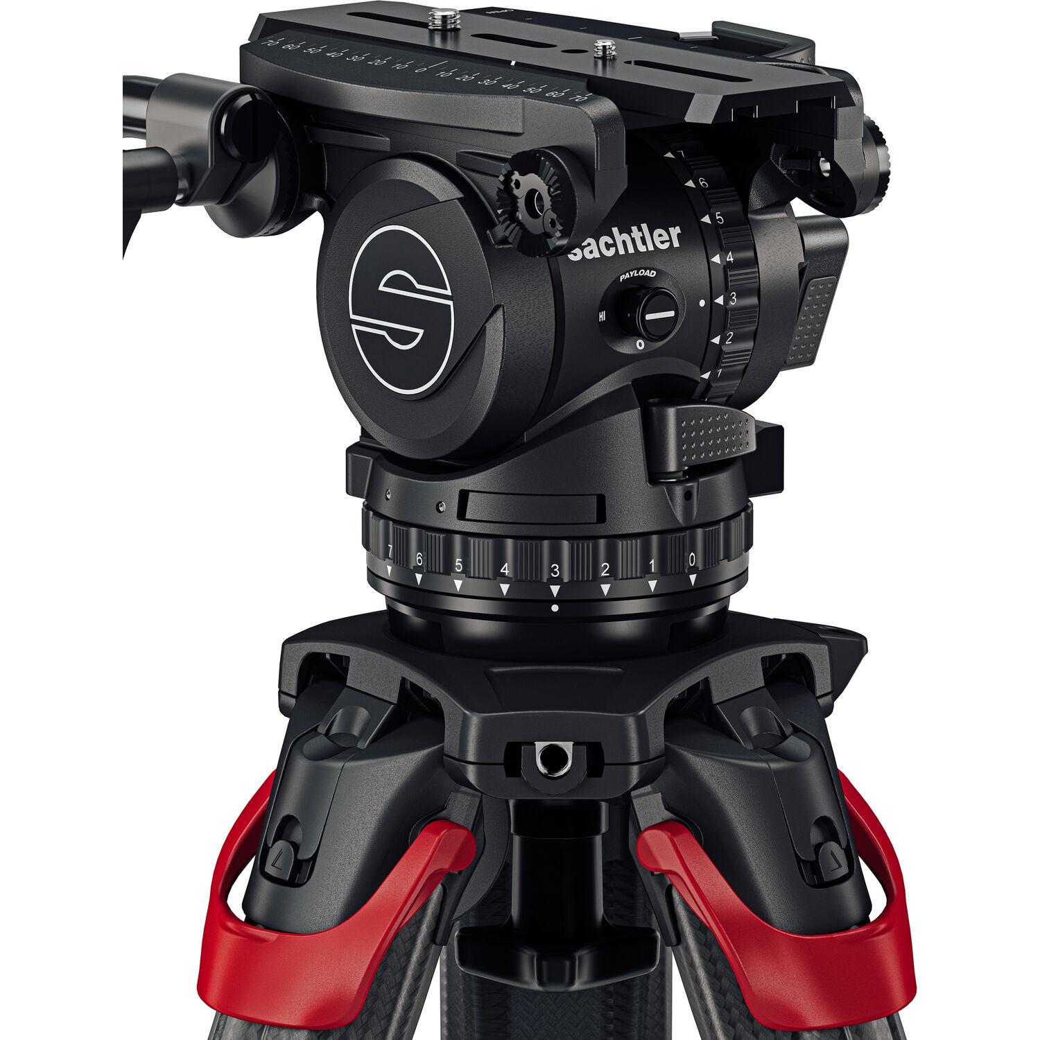 The lightweight Sachtler flowtech 100 MS Carbon Fiber Tripod with Mid-Level Spreader offers notable stability and quick setup and adjustments for payloads up to 66 lb. The novel flowtech design features quick release locks at the top of the legs, eliminating the need to stoop while adjusting the tripod height. All three legs can be deployed simultaneously to quickly find their individual levels on uneven ground.