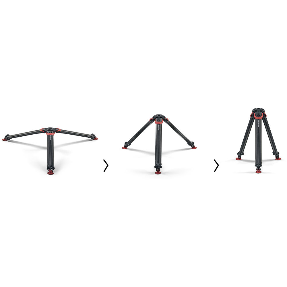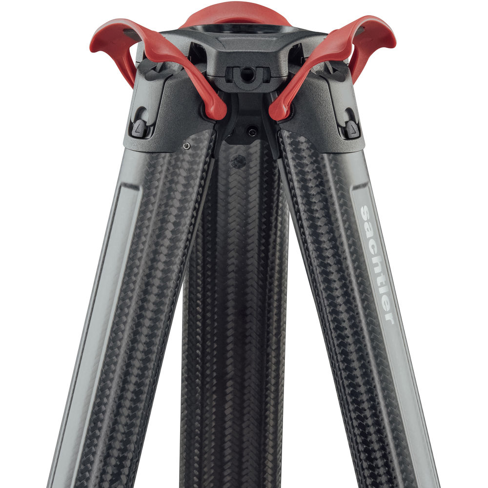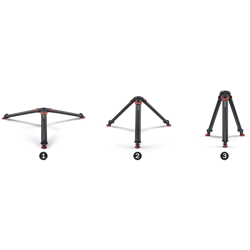 The Sachtler Flowtech 75 MS Carbon Fiber Tripod with Mid-Level Spreader and Rubber Feet eschews the common single or double carbon fiber tube design and instead has redesigned the shape of the legs for improved torsional strength. The legs work weigh just under 7 pounds yet they can support a payload of up to 44 pounds, and extend from a minimum height of 24" to a maximum height of 61" when using the included removable mid-level spreader. Each leg features a single clamping lever that locks and unlocks the sections.